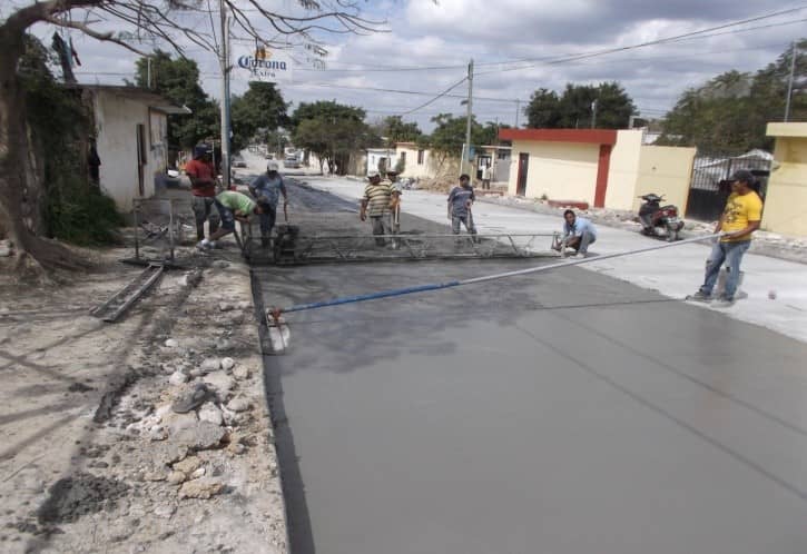 Trabajadores pavimentando calle